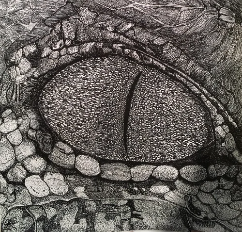 A most friendly view of an Albino alligator completed in soft blues and greys. ***** SOLD *****
